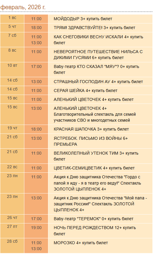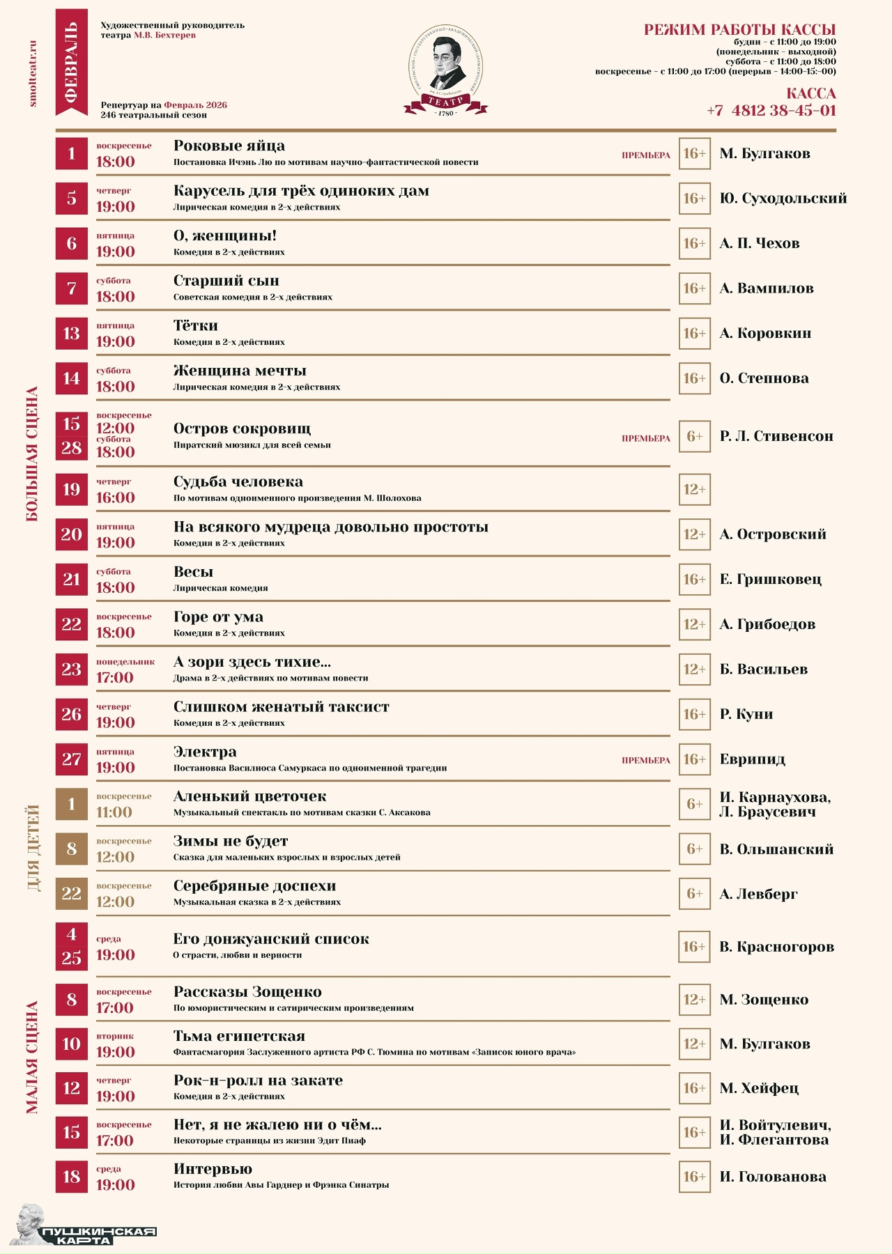 Афиша Смоленского Государственного драматического театра им. А.С. Грибоедова