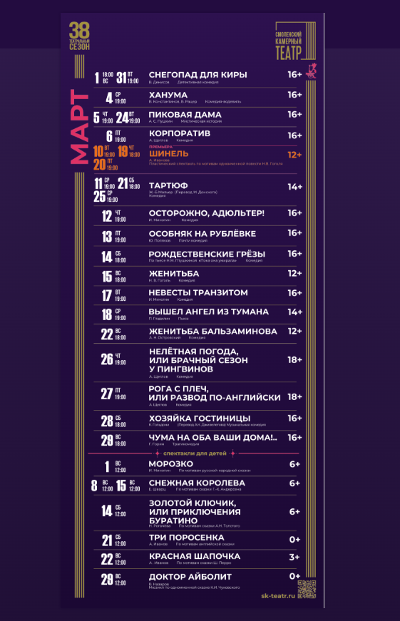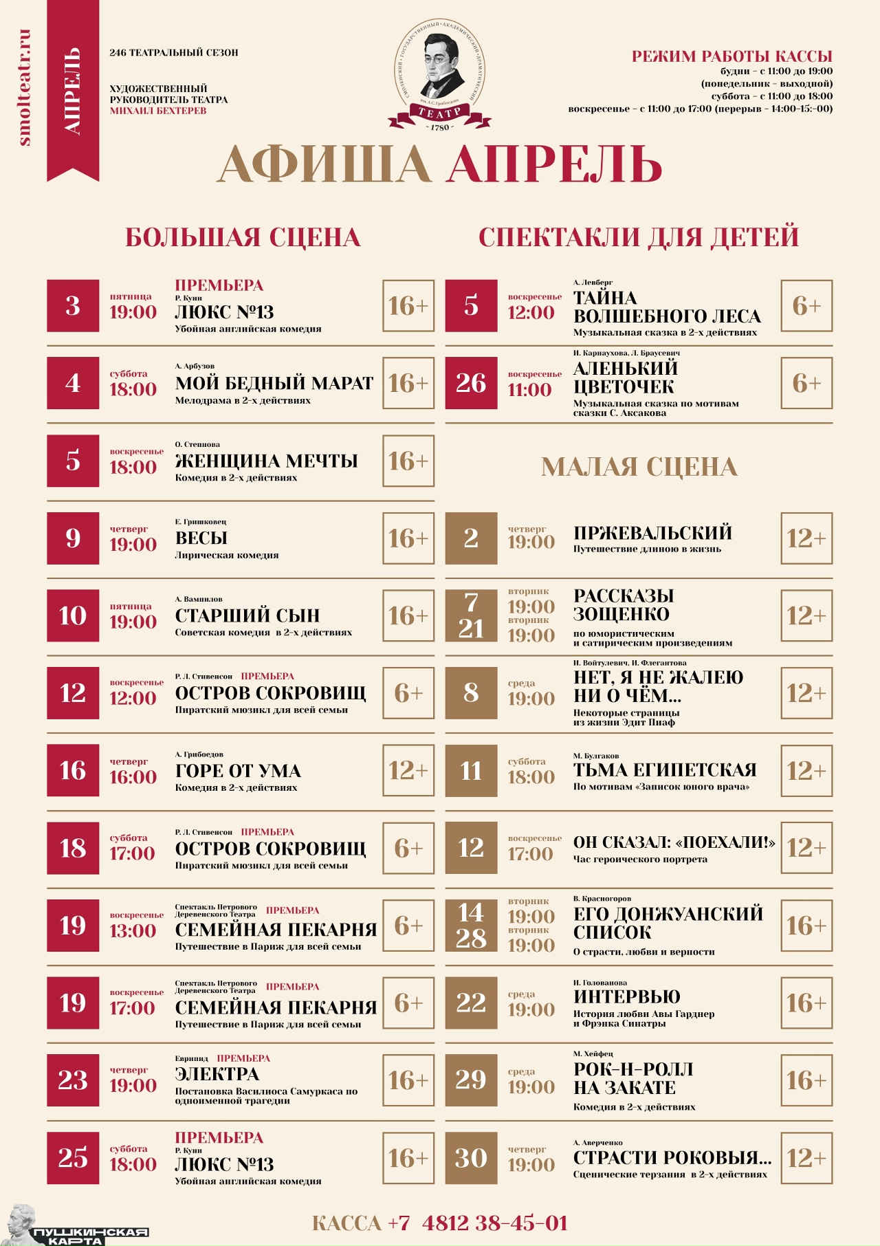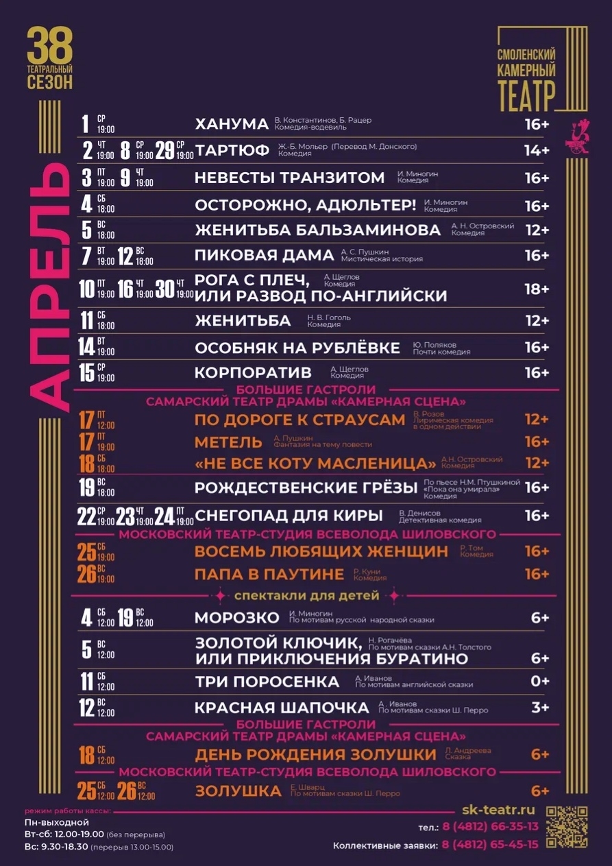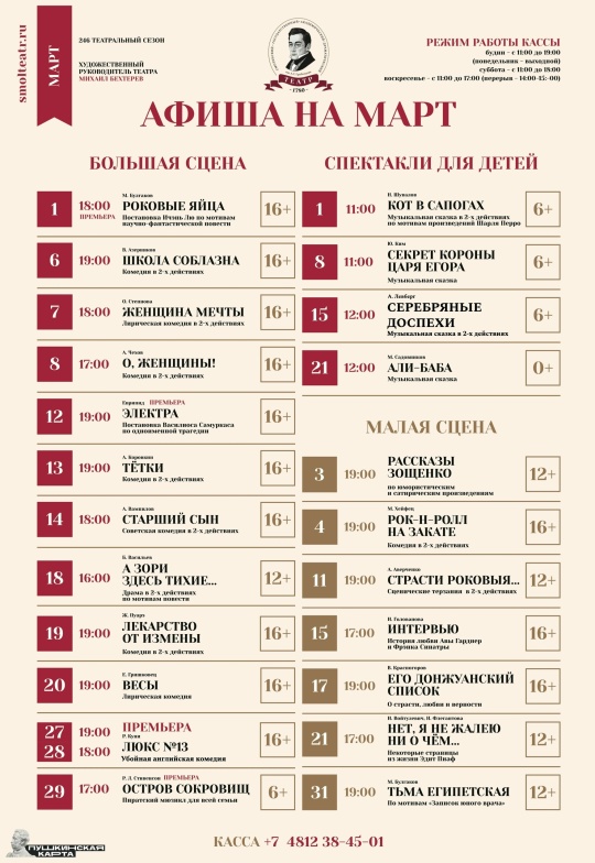 Афиша Смоленского Государственного драматического театра им. А.С. Грибоедова