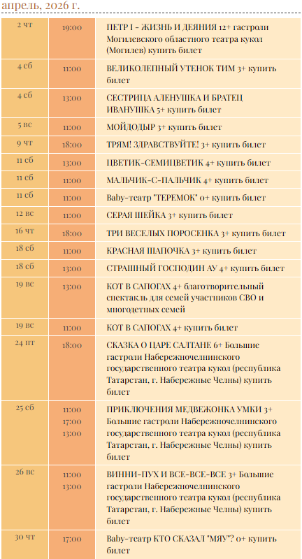 Афиша Кукольного театра